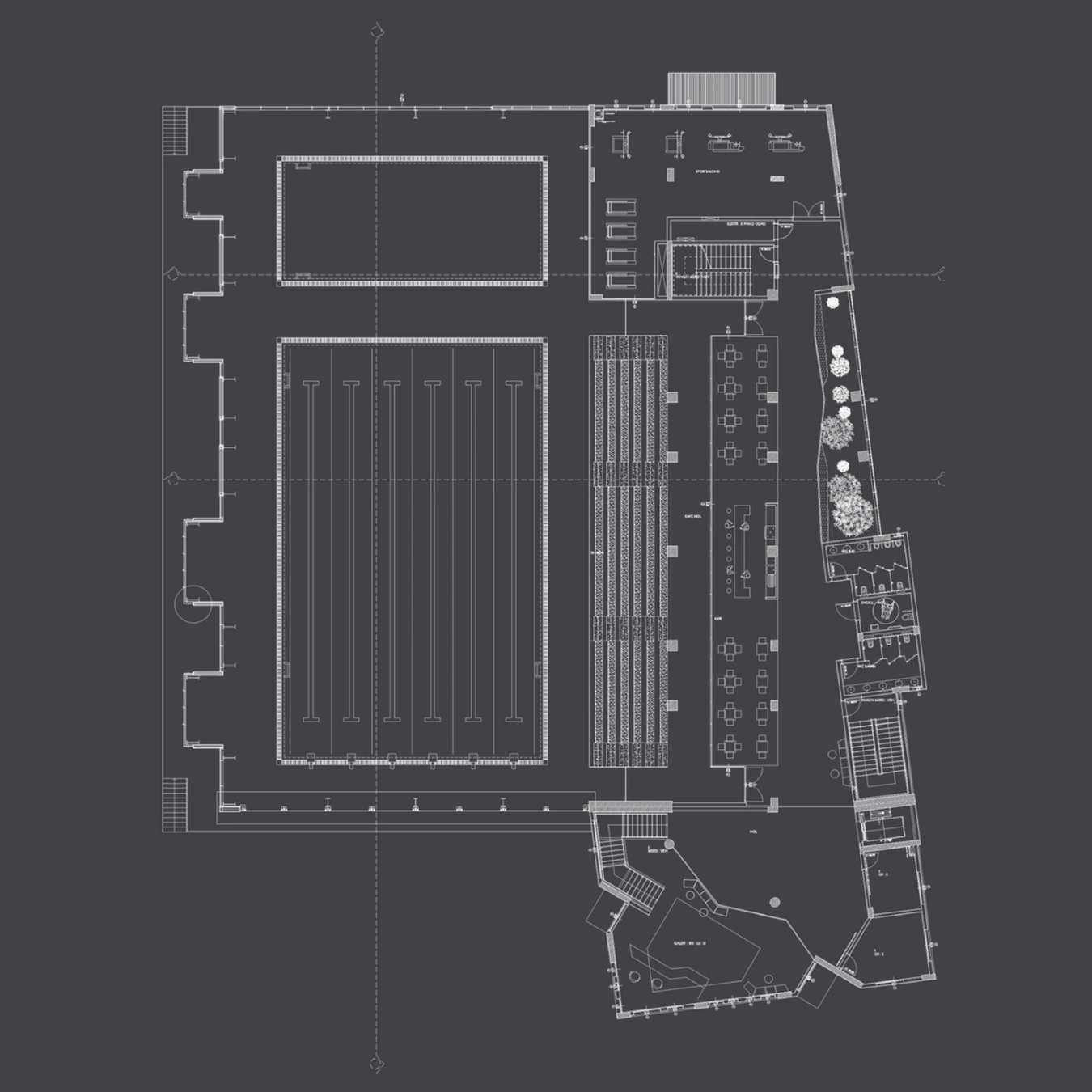 Dokuz Eylül Üniversitesi Tınaztepe Yerleşkesi içinde; tüm sosyal ve sportif aktivitelerin de üzerinde bulunduğu ana aksa paralel kalan arazide Yanı Olimpik Kapalı Yüzme Havuzu tasarlanmıştır. Yerleşim yapılırken eğimden maksimum faydayı almak amacıyla, bina kütlesi en alt kota yerleştirilirken; havuz ihtiyaçlarını karşılayacak birimler ise eğim altında kalacak şekilde, Üst örtü üzerinde kınklar yaratılarak içeriye farklı açılardan doğal ışık alınması amaçlanmıştır. Binanın dolaşım akslar, ıslak hacimleri, sosyal ve sportif aktivite alanlar konvansiyonel betonarme sistem ile çözülürken havuz bölümü üst örtüsü çelik olacak şekilde tasarlanmıştır. Dış mekan peyzajı iç mekandaki kafe bölümünde devam edecek şekilde bir avlu yaratılmıştır.